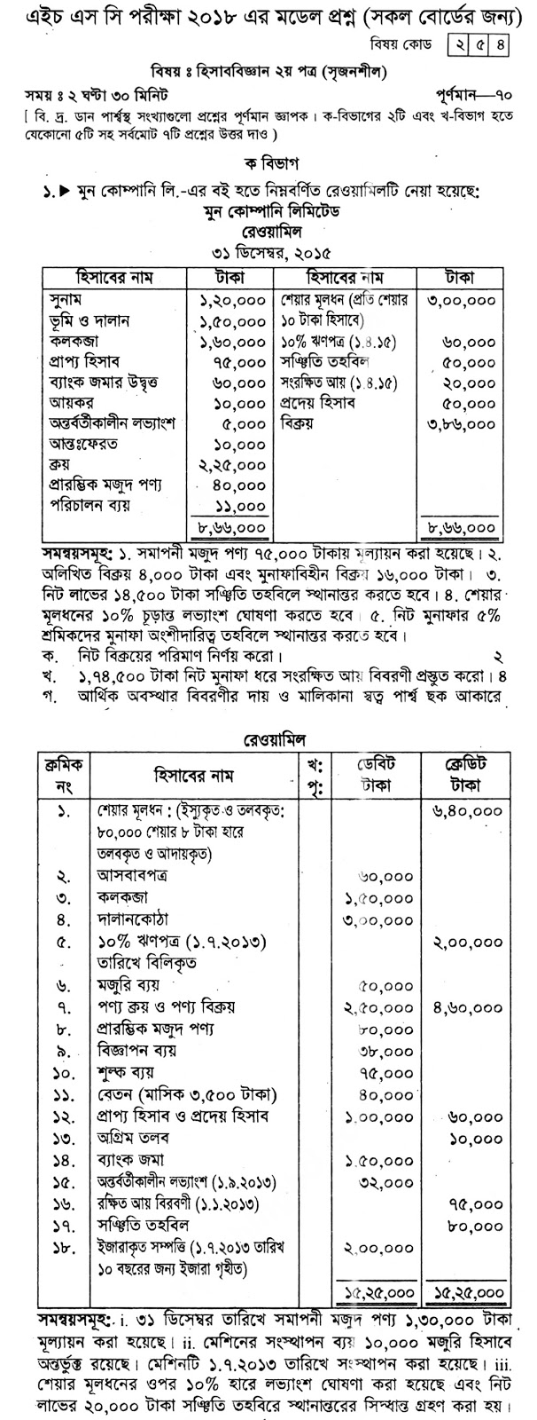 HSC Accounting 2nd Paper Model Question for all boards for the hsc students. You are welcome to download the question paper as pdf by using any pdf tools. You can also use any firefox addons or chrome extensions. You can also press ctrl+p to print the document quickly. If you install the Foxit PDF printer in your computer, you can easily download the images as pdf. If you like to see the images as zoom, just click on the images and see to big font. I hope you will be satisfied to take a good preparation for the coming hsc examination. We will keep collecting suggestions for you and post here for your download. Now let's download the HSC Accounting 2nd Paper Model Question for All Boards.